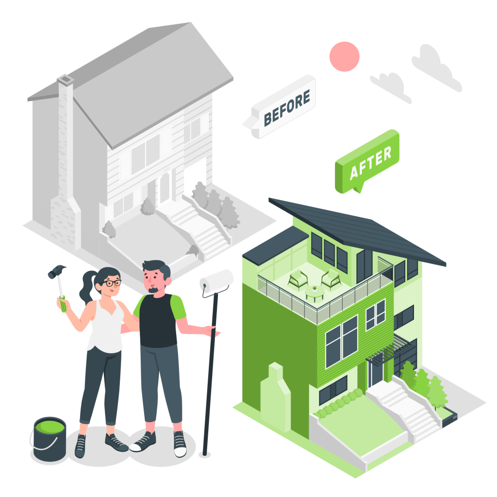 Tässä näette ennen ja jälkeen -kuvat. Olemme myös tehneet kodistamme ympäristöystävällisemmän asentamalla aurinkopaneelit ja perustamalla sadeveden keräysjärjestelmän. Kestävä asuminen on lähellä sydäntä ja tuntuu upealta olla osa yhteisöä, joka välittää ympäristöstä.
